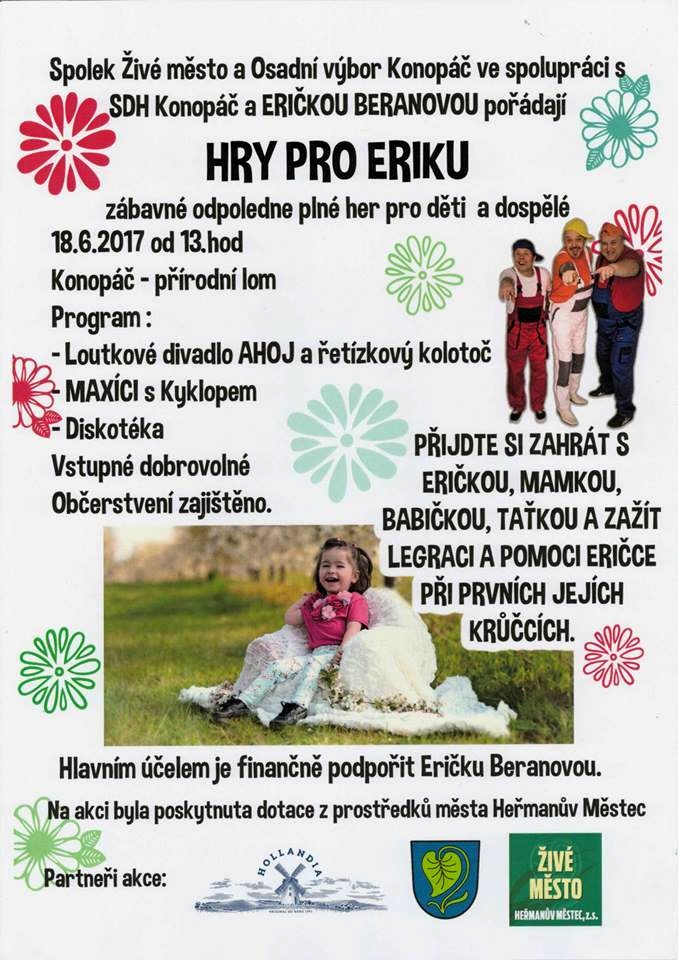 Chceme malé Eričce pomoci i letos a to v jejím "domovském" Konopáči - trhneme rekord? Jste srdečně zváni!