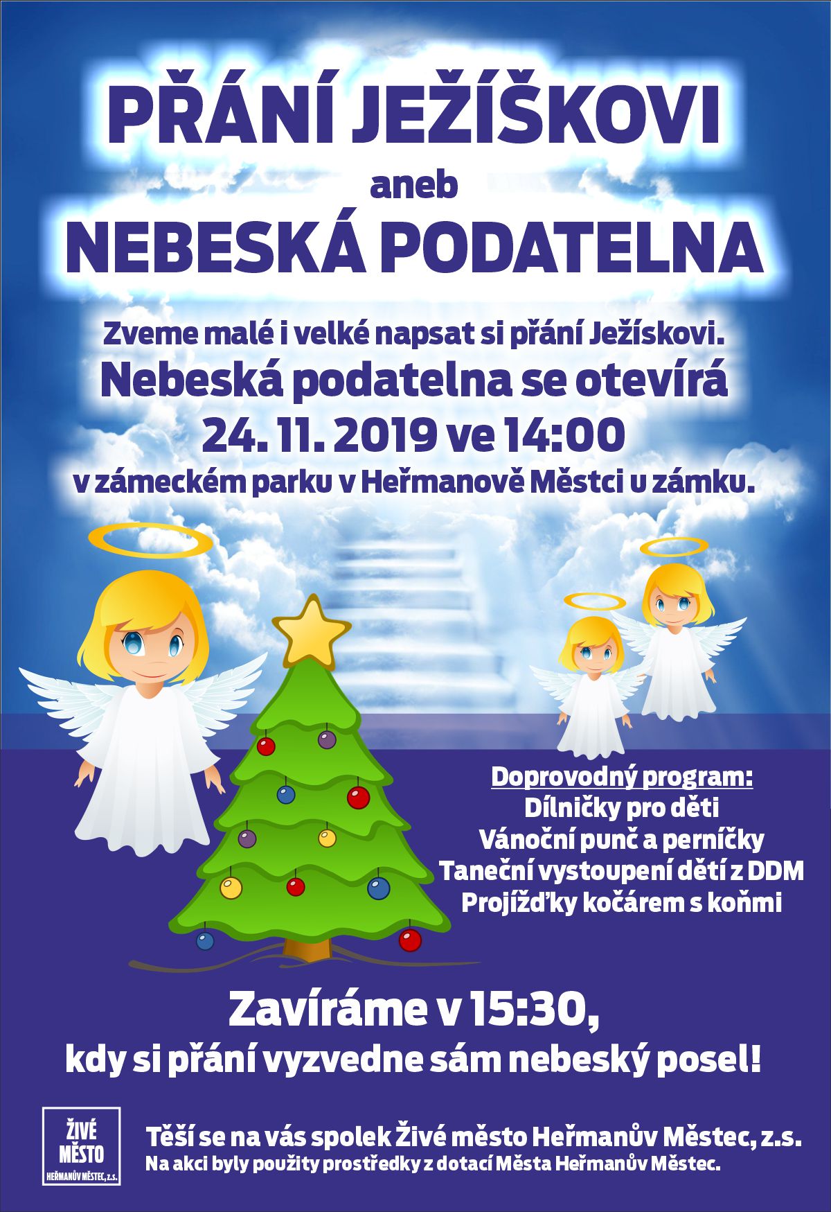 V neděli 24.listopadu úderem 14.hodiny se v zámeckém parku otevře pobočka NEBESKÉ PODATELNY 2019! Balonky s přáním Ježíškovi jsme po pěti letech ukončili. Útoky nám nedělaly úplně dobře, ale my to nevzdali! Chceme i nadále přispět k předvánoční pohodě a vidět rozzářené dětské oči a úsměvy. Takže letos jinak! Ale s o to větší chutí. Těšíme se na vás. S Nebeskou podatelnou!